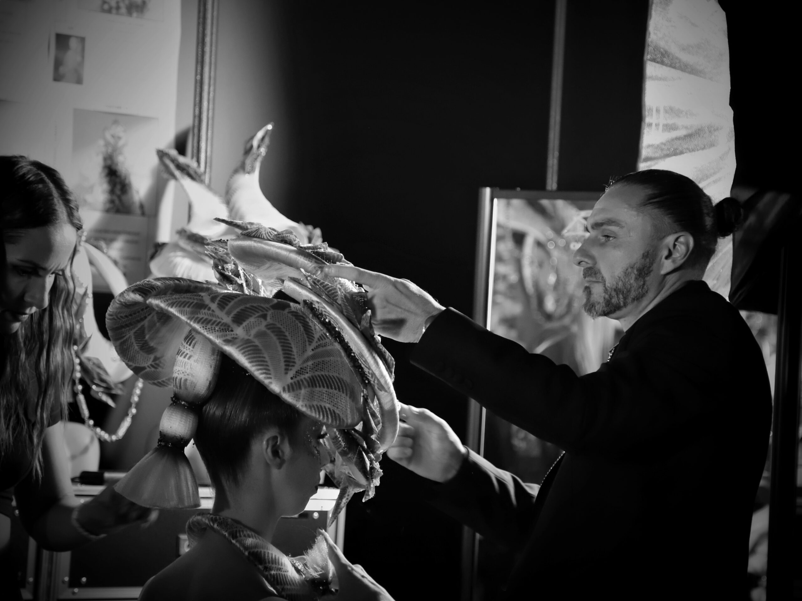 Cette série est née de la rencontre avec le travail de Raphaël Perrier, dont les créations capillaires dépassent la technique pour entrer dans le champ de la performance artistique.